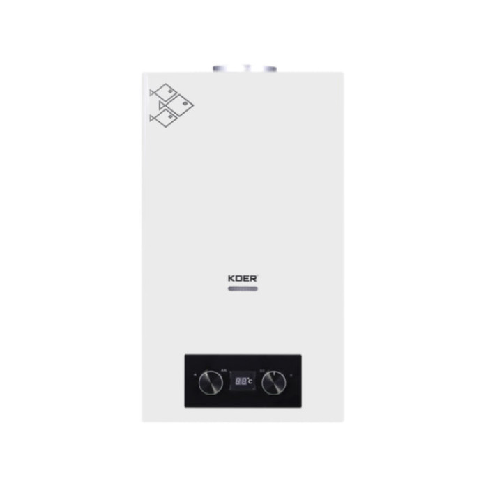 Колонка газовая KOER KWH.G0110 — устройство для нагрева проточной воды, использующий природный газ в качестве источника энергии. К устройству подводятся трубы подачи газа и холодной воды. На выходе из трубы идет горячая вода (при включении крана). Высокое качество сборки, электронный дисплей, контроль дымоудаления и наличия пламени, защита от перегрева – все это реализовано в конструкции изделия.